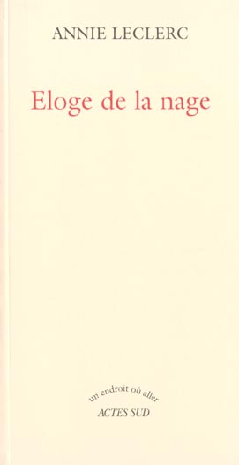 Ce livre invite le lecteur à une méditation sur l’expérience de la nage. Annie Leclerc écrit le corps dans l’eau, le plaisir de l’immersion, là où la nage devient un moment de présence attentive. Cette réflexion s’exprime aussi à travers des phrases très sensibles où la pensée se déploie avec grâce.